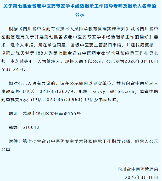 四川省中医药管理局发布的