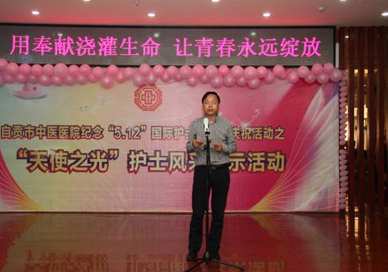 院长杨正春代表医院班子向全院护理人员表示节日的问候!他指出在全院护理人员的共同努力下,医院护理事业取得了辉煌的成绩:护理学建设成为国家临床重点专科(中医专业)建设项目;医院被评为全国中医医院优质护理服务先进单位;针灸二科被评为全国中医医院优质护理服务先进病房;获国家实用型专利9项;创新中医特色健康管理,自创面瘫康复操、静坐调息法等7项中医养生操获四川省版权专利;近三年市级护理科研立项 5 项,引进护理技术27项,其中3项获市级护理新技术三等奖……杨院长要求全院护理人员要把握医改机遇,找准特色优势,以五大理念为引领,以创新发展为抓手,弘扬南丁格尔精神,力促医院发展实现新突破,为人民群众提供更加优质、便捷、高效的中医药服务,为医院“十三五”开好局、起好步!