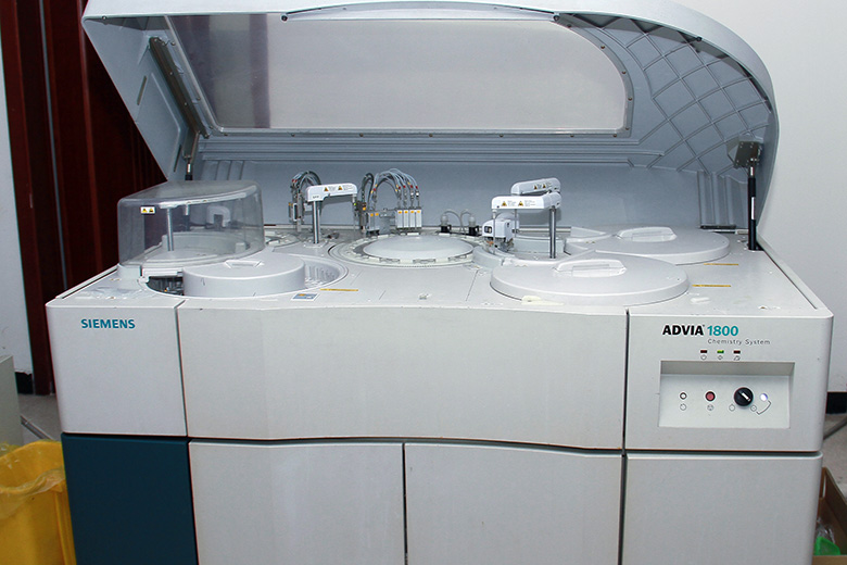 日立7080型大型全自动生化分析仪,是日本日立公司原装进口的大型设备。该设备制作精良,实验结果非常准确,能正确反映病人的肝功能、肾功能、血糖的状态,体内电介质的含量、血脂水平等,对患者疾病的诊断、治疗以及脂代谢的状况都能得出准确的结果,是危重病人的抢救、治疗以及相关疾病的诊断起到至关重要的作用。