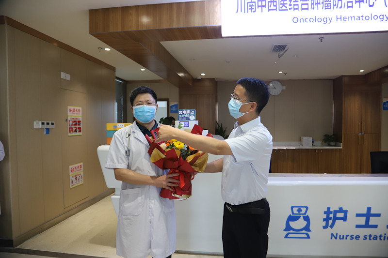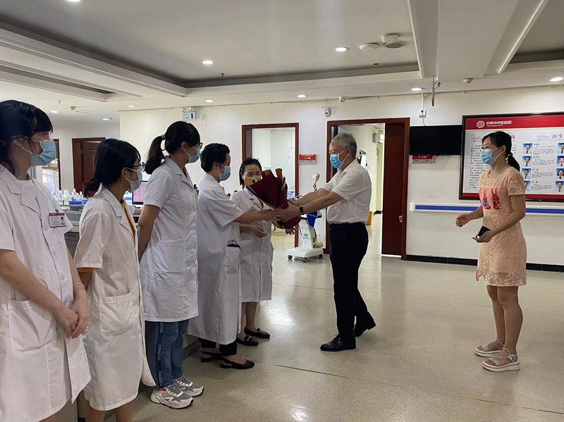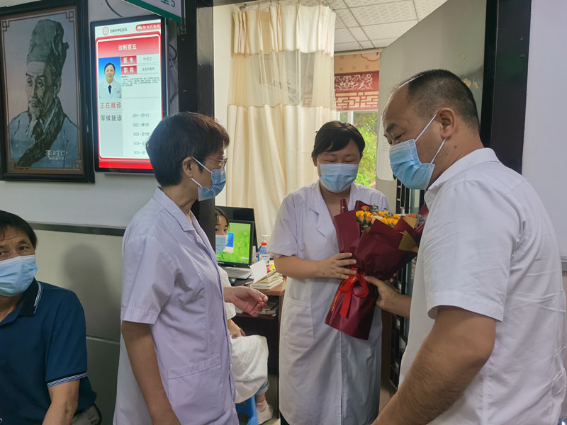 在第五个中国医师节来临之际,8月18日,医院领导及相关科室负责人来到各临床科室,亲切慰问坚守在一线的医师们,给他们送去鲜花和礼物,并致以诚挚的问候和祝福。