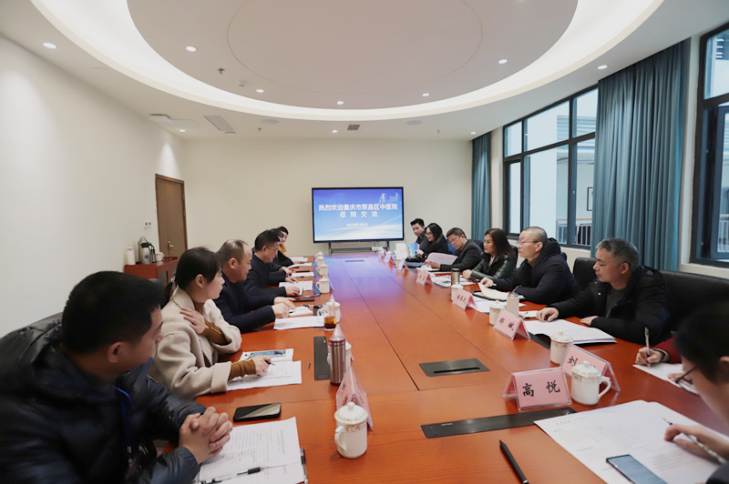 2月8日,重庆市荣昌区中医院党委书记喻蓉,院长傅要武及相关科室负责人一行8人莅临我院学习交流文化建设和“三甲”创建工作,党委书记陈彬、副院长卢家泉及相关科室负责人陪同参观交流。