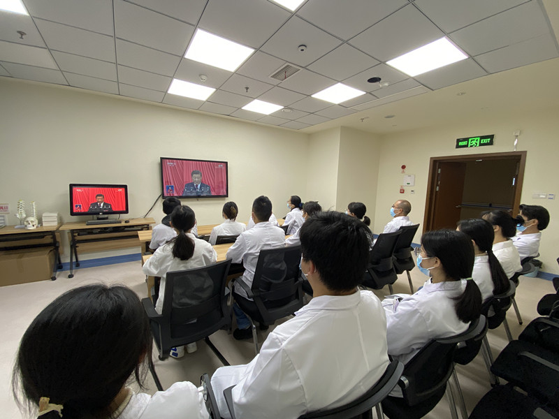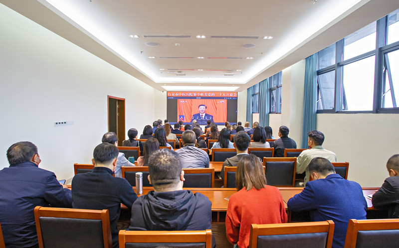 在保障正常诊疗服务前提下,医院采取集中与分散相结合的方式,在医院会议室、门诊候诊大厅、住院病房等区域播放开幕会直播,确保医院广大干部职工、患者及家属及时同步收听收看党的二十大开幕会盛况。
