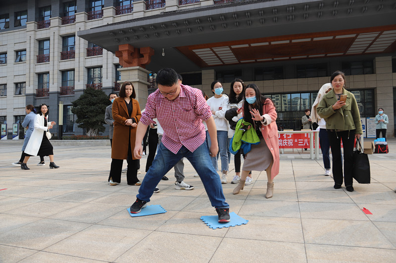 阳春三月,草长莺飞。为庆祝“三八”国际妇女节,培养员工队伍良好团队合作精神,切实增强凝聚力、战斗力,展示干部职工健康向上、充满活力的精神面貌。3月7日,市中医医院在卧龙湖院区广场举行了“破局前行 巾帼魅力”庆祝“三八”妇女节趣味活动,来自6个工会大组的60余名职工参加了活动。