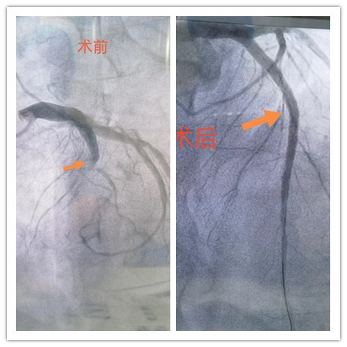 随后,心脑血管科征得患方同意后立即行冠脉造影检查,结果提示患者冠状动脉前降支近段堵塞,行血栓抽吸术+冠脉支架植入术。