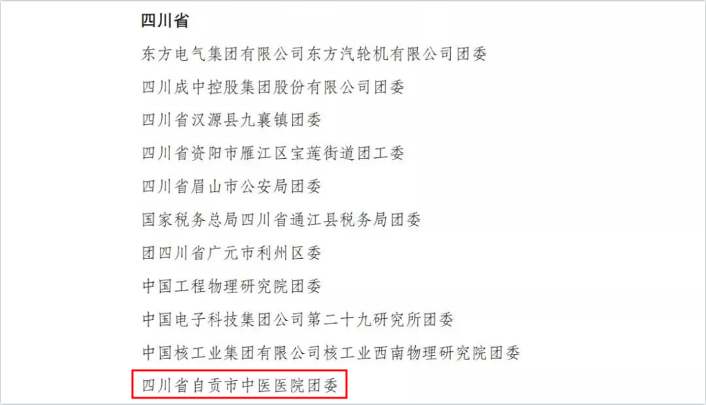 市中医医院团委成立于1989年,现有团支部7个,团员171人,团干部22人,青年占全院职工65%。先后荣获四川省五四红旗团委、自贡市五四红旗团委等称号。