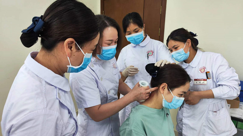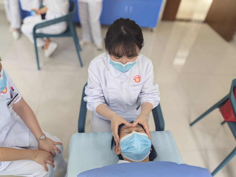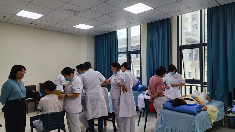 培训后学员们根据自身体验提出操作后的感受,然后老师请学员们相互在对方身上进行实操,检验学员们的辩证思维、操作手法等,大大提升了学员们的中医护理技术操作能力。