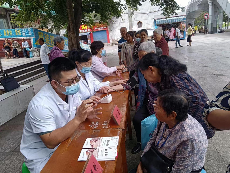 专家们为前来就诊的群众免费体检、量血压、测血糖、疾病检查,现场进行答疑解惑和预防保健健康教育宣传,开展免费体验中医特色项目中药耳穴贴、推拿等,让群众在家门口享受到优质医疗服务。