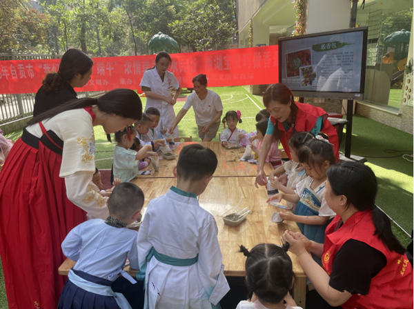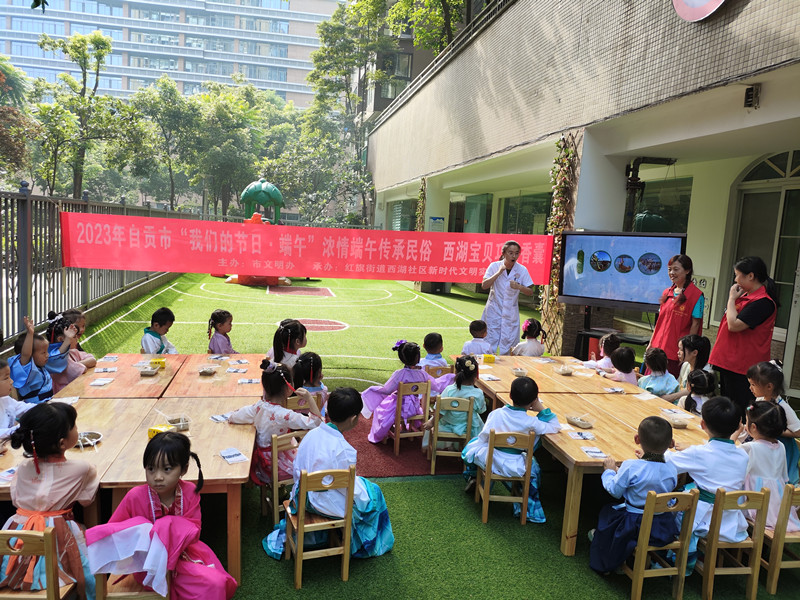 为更好地给未成年人普及端午文化,香囊和中医药知识,6月19日,红旗街道西湖社区携市中医医院在辖区了开展2023年自贡市“我们的节日·端午”浓情端午传承民俗,西湖宝贝巧做香囊”的活动。