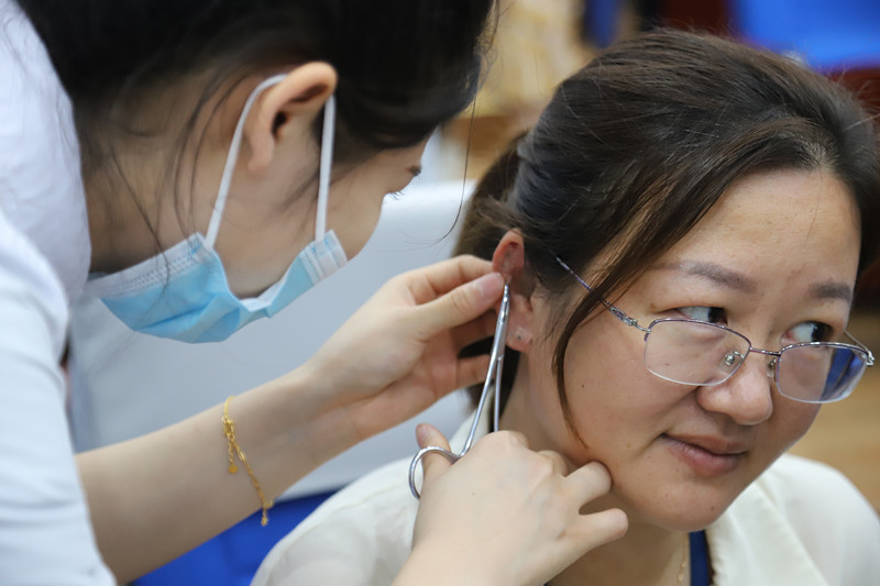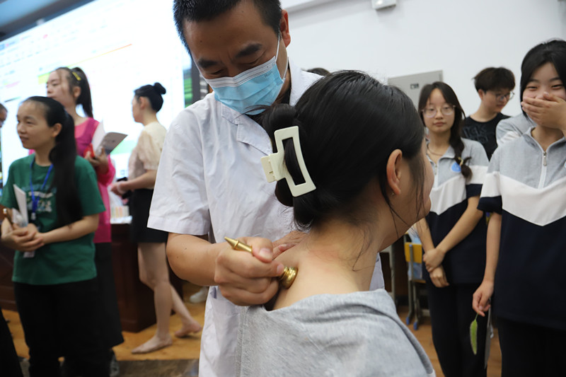 市中医院9名专家为学校师生开展了义诊活动,共为130余名师生进行了简单体检,专家们通过中医体质辨识、针灸、拔罐、耳穴贴等中医适宜技术让大家近距离体验了中医的神奇。