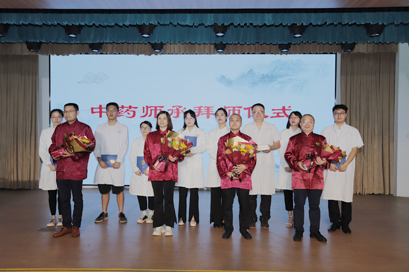 在中药师师承拜师仪式中,市第一人民医院药剂科李勇、廖能、市中医医院银红梅、杨可冬四位副主任中药师作为自贡市首批中药师承老师,接受7名优秀青年西药师拜师学习。