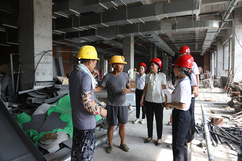 项目现场,中医特色重点建设项目临时党支部书记、项目工作分管领导白彩玲对项目人员和施工人员表示了亲切的慰问和感谢,嘱托大家在坚守岗位的同时,要注意身体防护。她强调:目前,项目二装施工全面进入冲刺阶段,在全力抢抓进度的同时,一定要确保项目安全与质量。一是要牢固树立生命至上的安全生产理念,科学合理安排施工作业,合理调整作息时间,切实做好防暑降温工作。二是强化施工规范,认真贯彻落实安全生产、文明施工和标准化作业的各项要求,加强现场安全监管力度,确保工程施工安全。三是精心管控,严格施工程序,把控好工程质量的每个环节,加快推进项目建设工作。