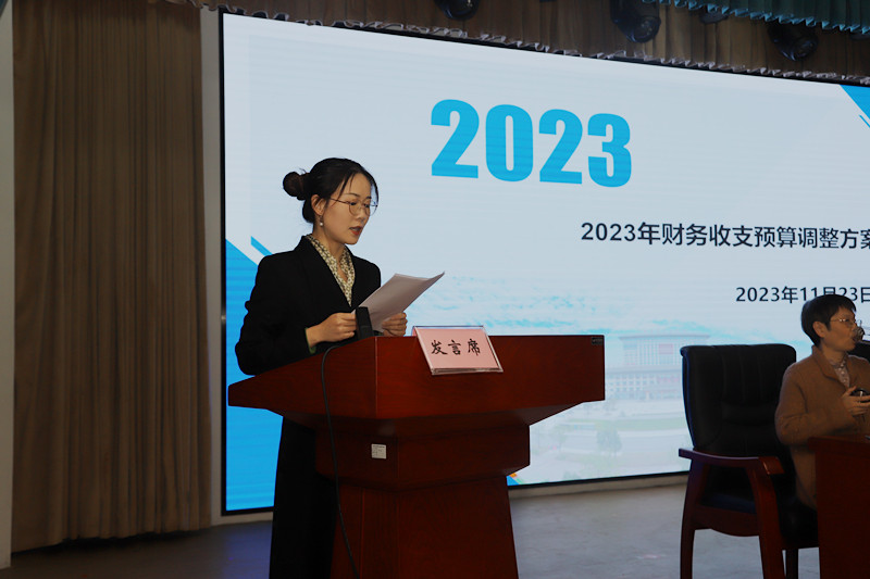财务科副科长钟蕊菡作《关于医院2023年财务收支预算调整方案》报告。