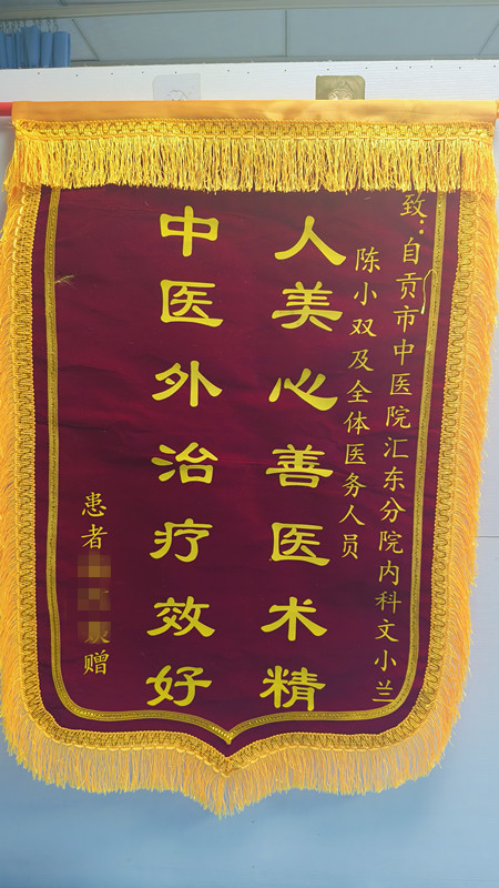“真是太感谢你们了,正是有你们细心护理和科学诊疗才让我身体恢复得这么快!”近日,患者杨阿姨和家属将一面印有“人美心善医术精 中医外治疗效好”的锦旗送到汇东分院内科医护人员手里,嘴里还不停地说谢谢。