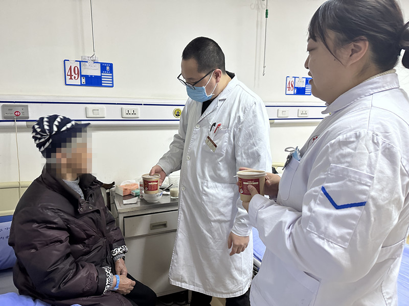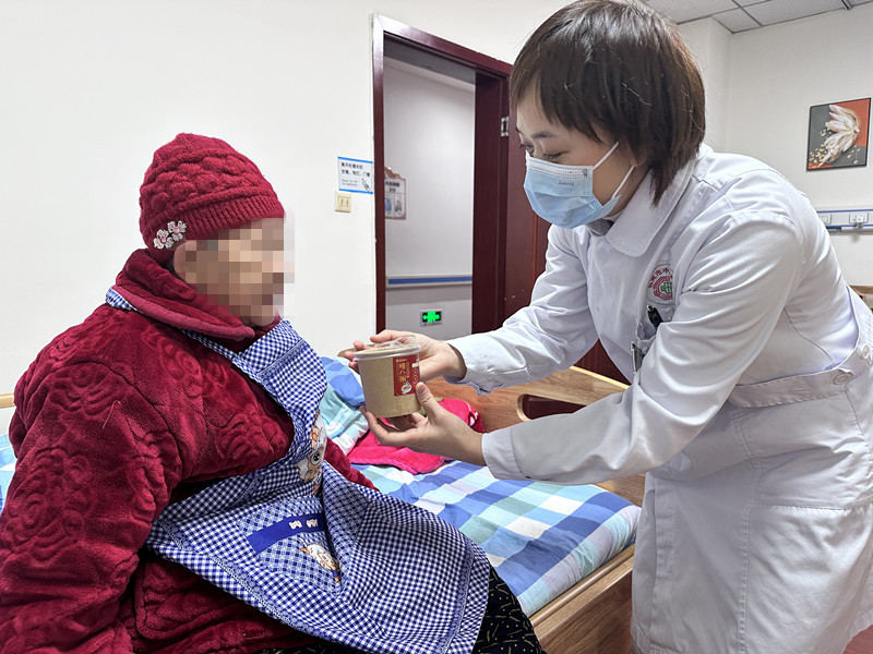 “阿姨,今天是腊八节,喝一碗腊八粥,愿您在新的一年,万事‘粥’全……”在肿瘤血液科、神内老年病科、医养结合中心内,医护人员将饱含祝福的腊八粥推进病房,亲自送到患者床边,此刻,病房里洋溢着浓浓的节日氛围,患者及家属的脸上多了一抹幸福。