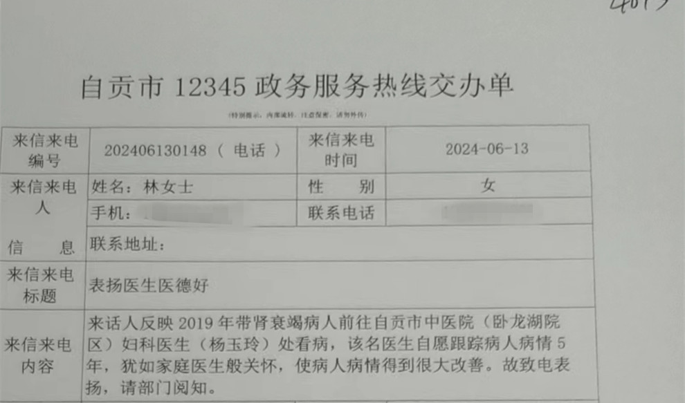“我要感谢市中医医院杨玉玲医生,通过她的热情服务、精心诊治,让我父亲的病情延缓了进展,提升了生活质量。”这条来自市12345政务服务热线平台的信息,源于市民林女士,以此表达杨玉玲医生感谢。