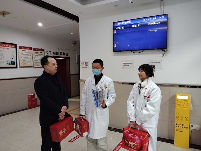 又是一年新春至,岁寒最是情暖时。1月28日,院党政领导班子和部分职能科室负责人分别来到马冲口院区、卧龙湖院区、汇东分院的各科室、部门,看望慰问春节期间坚守在工作岗位上的医务人员,向他们致以新春节日的问候和美好祝福,感谢大家一年来的辛勤劳动和默默付出,并为大家送上了春节慰问品。