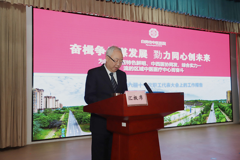 院长邓昭红作《奋楫争先谋发展 勠力同心创未来——为建成中医特色鲜明、中西医协同发展、综合实力一流的区域中医医疗中心而奋斗》工作报告。