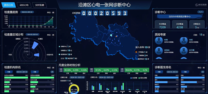 2025年1月,自贡市中医医院远程心电中心开始运行,覆盖14家成员单位、19个医疗点位,实行“基层检查、上级诊断、精准救治”高效医疗模式,让百姓在家门口就可以享受优质的医疗服务。据沿滩区紧密型城市医疗集团秘书长李源介绍,自中心建设以来,总检查量20000余例,基层心电检查报告结论准确率从63%提升至98%,预计每年为居民节约就医成本超100万元。