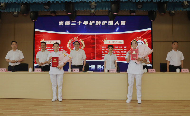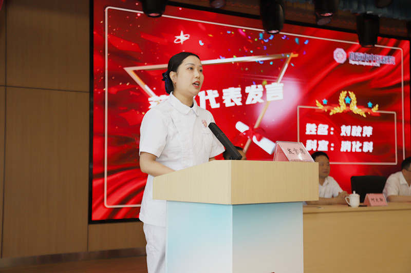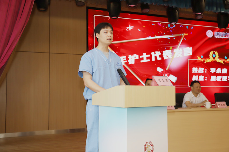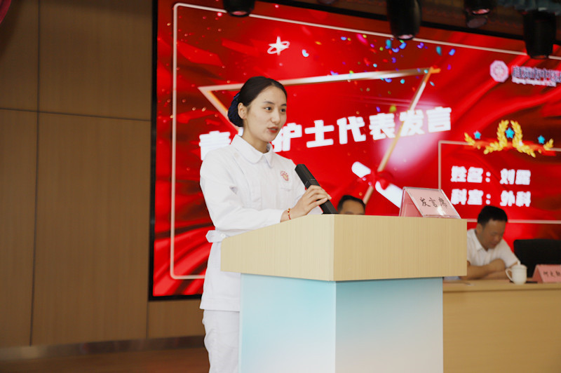 30年护龄护理人员代表罗平,获奖护士代表刘秋萍,青年护士代表刘露、李永康依次上台发言。