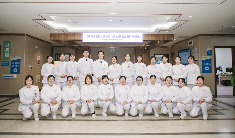 市中医医院肿瘤血液科护理团队现有护理人员共24人,其中主任护师1人,副主任护师4人,主管护师8人。科室被列为国家中医优势专科建设单位、省重点中医专科、省首批肺癌病中医药防治中心,“四川省巾帼文明岗”等殊荣。