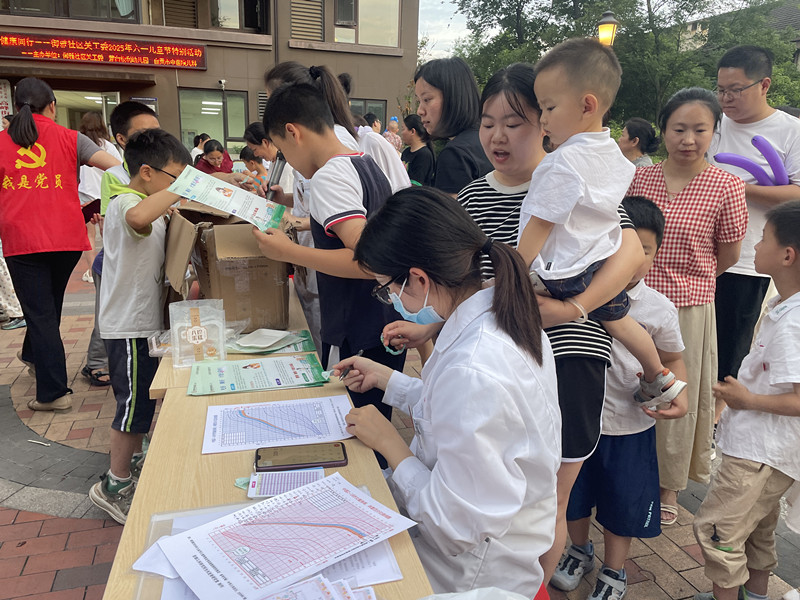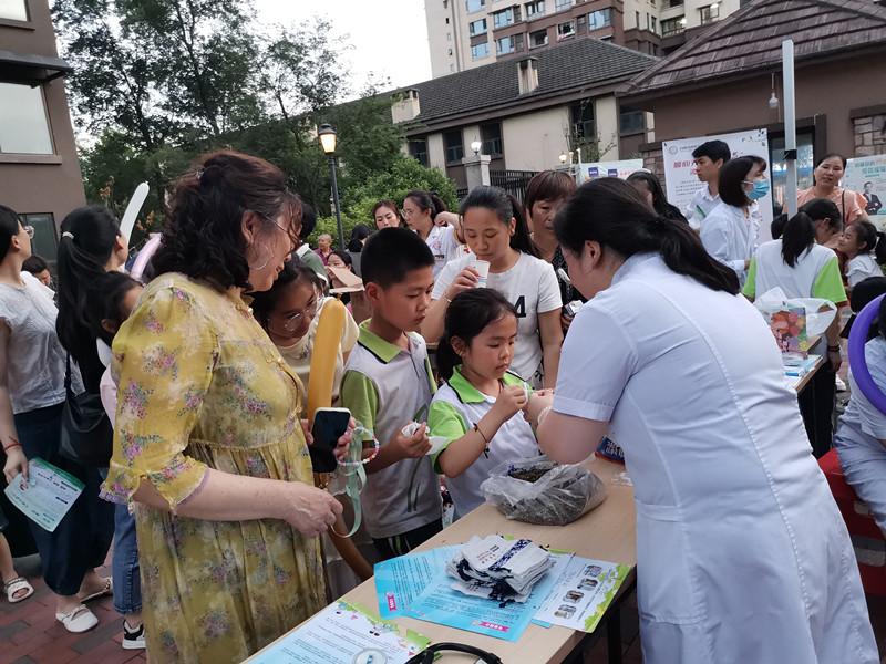我院儿科、营养科的专家团队与社区工作人员紧密配合,为百余组家庭提供了多项健康服务。儿科医生针对儿童常见病、生长发育问题提供一对一解答,并依据身高、体重测量数据为家长解读孩子成长趋势。小儿推拿、耳穴压豆、艾灸等中医特色疗法,吸引众多家长驻足询问和体验。中药香囊DIY区成为孩子们的“打卡点”,亲手制作驱蚊香囊的同时感受中医药文化魅力,切实让专业服务与中医文化深度交融。