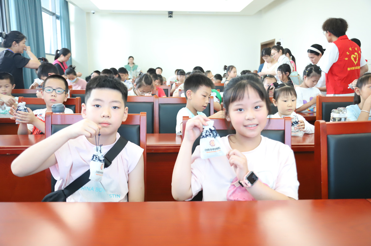 考虑到夏季防蚊需求,活动还设置了DIY防蚊香囊环节。孩子们在工作人员及志愿者的指导下,选取艾草、薄荷等驱蚊中药材,亲手制作香囊,既增强了动手能力,又学到了实用的夏季防蚊小技巧。