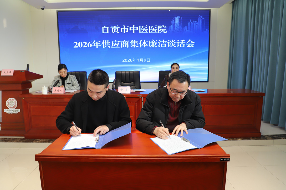 会上医院与供应商代表签订了《自贡市中医医院廉洁购销合同》。
