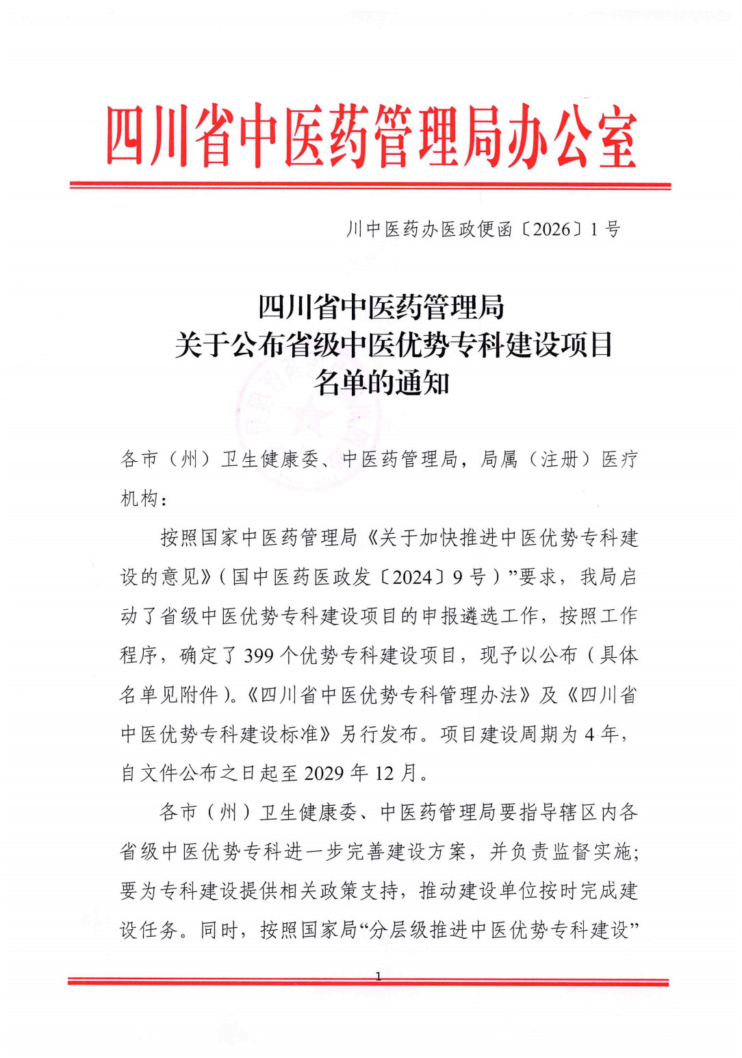 近日,四川省中医药管理局正式公布省级中医优势专科建设项目名单,市中医医院肺病科、脾胃病科、妇科、护理学、临床药学凭借鲜明的中医特色、扎实的诊疗技术和突出的学科影响力成功入选。