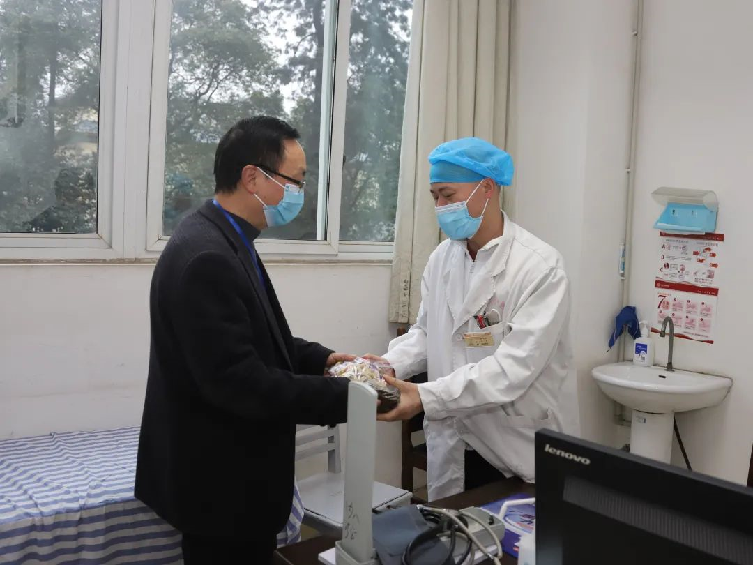2月11日(农历除夕),院党政领导班子和部分职能科室负责人分别来到马冲口本部、檀木林和汇东分院各临床科室,看望慰问节日期间仍坚守在一线的医务人员,向他们致以亲切的节日问候与祝福。