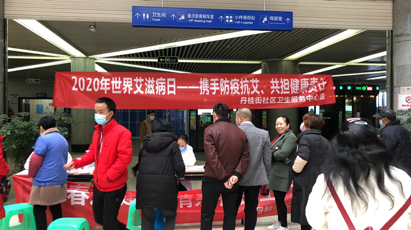 近日,市中医院丹桂街社区卫生服务中心在客运总站候车大厅开展了以“携手防疫抗艾,共担健康责任”为主题的宣传活动。
