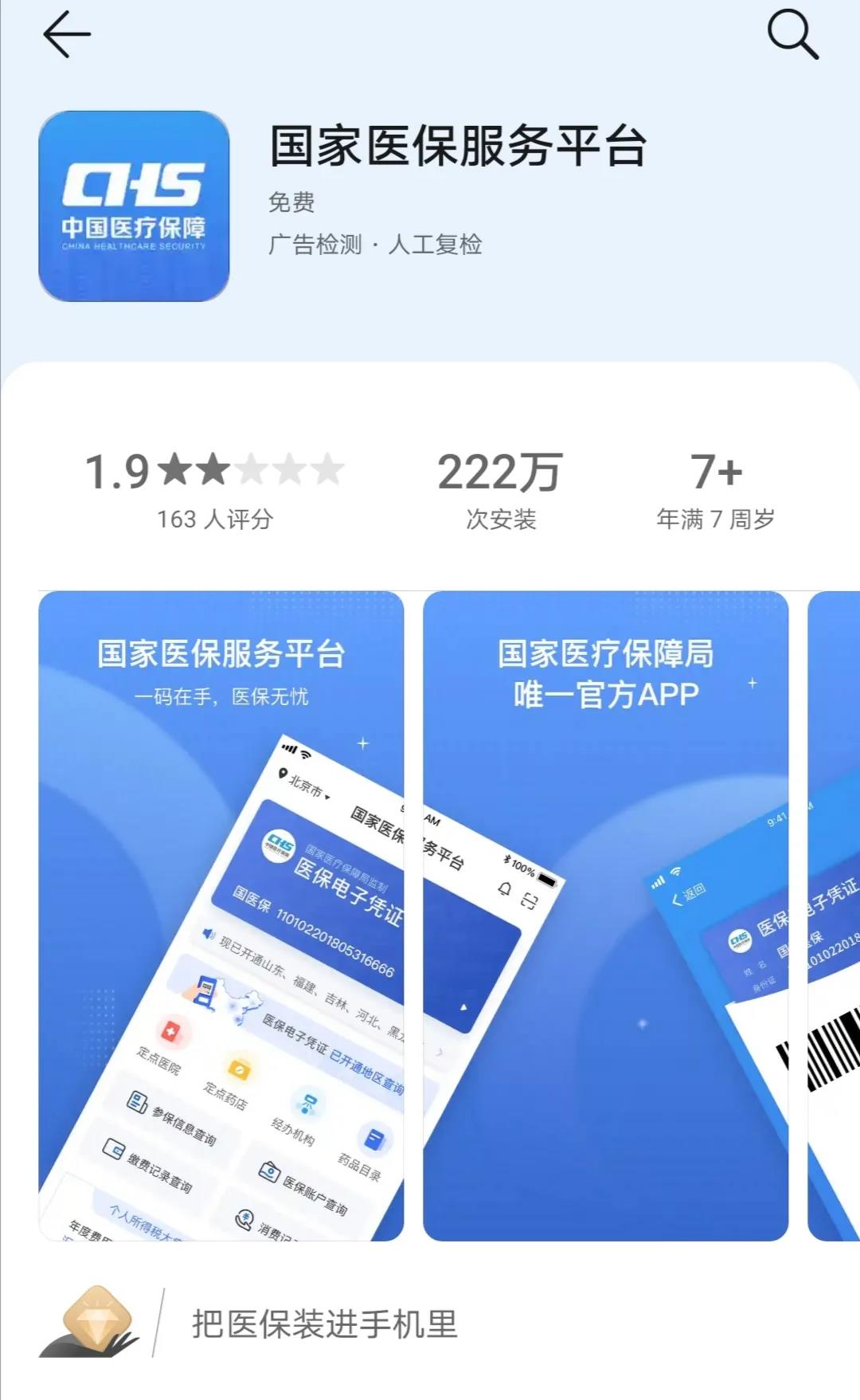 方法一:(官方APP):在手机APP商城、手机应用商店下载国家医保服务平台APP。