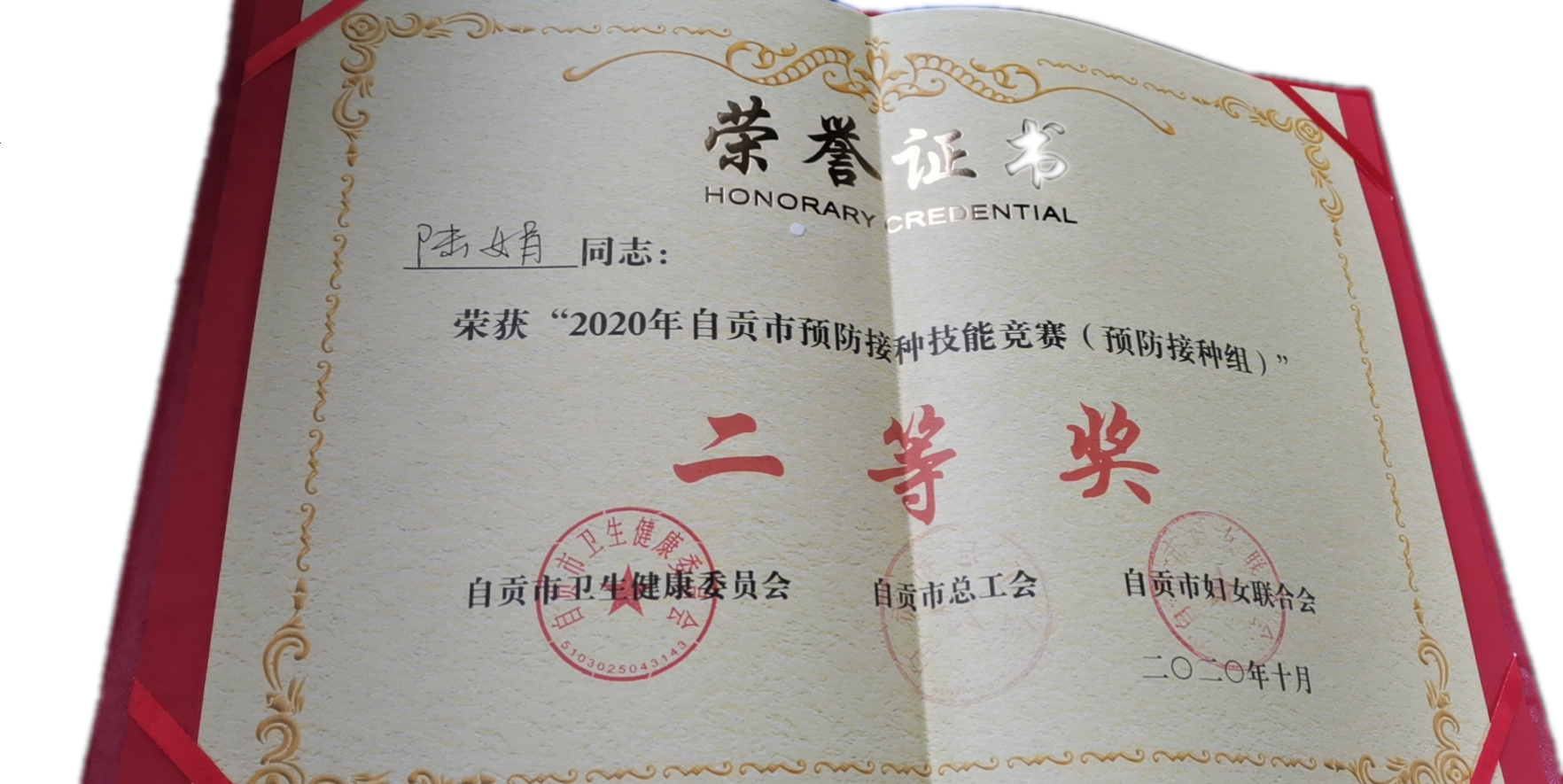 近日,由市卫健委、市总工会、市妇联主办的自贡市预防接种技能竞赛复赛在市疾控中心举行,来自各区县接种单位的6支代表队共40人参加了竞赛,市中医院丹桂街社区卫生服务中心工作人员陆娟荣获二等奖(预防接种组)的优异成绩。