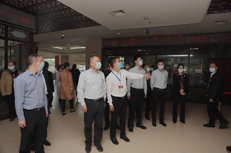 何树平一行实地查看了医院预检分诊、门诊大厅、感染性疾病科(后备定点隔离病房)等处,详细了解了医院医疗安全、消防安全、疫情防控处置流程、节前安全防范措施等方面情况。