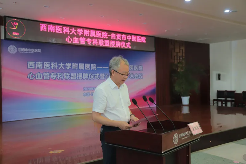 8月29日,西南医科大学附属医院——自贡市中医医院心血管专科联盟授牌仪式暨心血管病学术会议在市中医院学术报告厅举行。西南医科大学附属医院发改办主任廖国伟,心血管内科教授李家富、黄维义、叶强,市卫健委体制改革科科长李皓思,市信息中心医学技术服务部主任肖胜涛,医院领导、相关部门负责人以及心脑血管科医务人员等共200余人参加授牌仪式和学术会议。