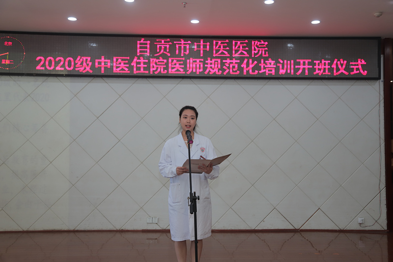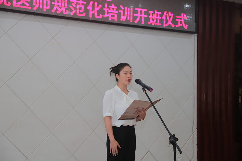 2019级规培学员代表陈媛发言。据悉,市中医院作为国家级中医住院医师规范化培训基地,2019年医院共送考规培学员44人,其中43人顺利通过考核,取得国家级中医住院医师规范化培训合格证书。