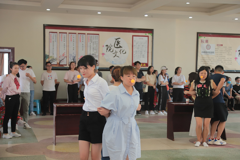 丝袜保龄球、小鸡吃米、穿裤子、夹硬币……青年医师们通力协作、配合默契,在欢快的气氛中圆满完成了各项比赛。