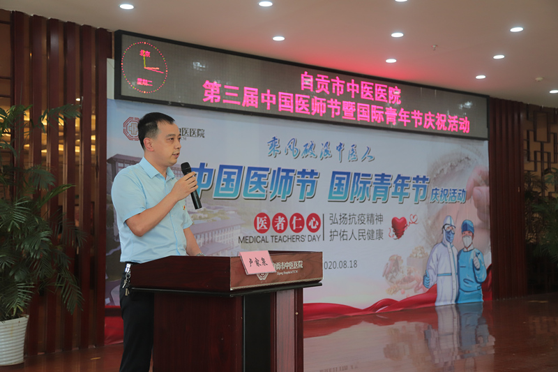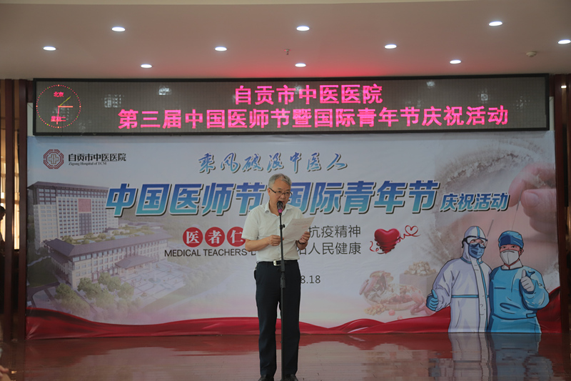 党委书记陈彬致辞,希望广大医务人员修医德、行仁术,团结一心,护佑人民健康,在做好新冠疫情防控的同时,朝着既定的目标,迈出坚定的步伐,为医院发展和腾飞奋力拼搏。