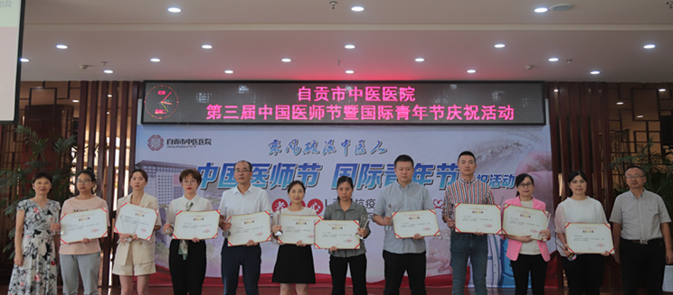 颁发荣誉证书和奖杯。曾晓冬、杨玉玲、屈骄、王善建、欧魏英、张红、李亮、朱彦、黄玲、刘静荣获2019-2020年度“十佳青年医生”。