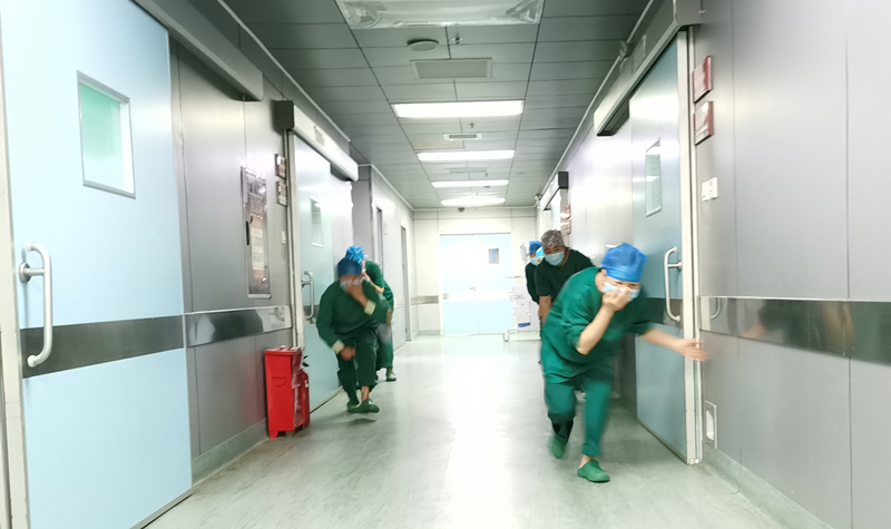当天,麻醉科医务人员对灭火器的使用进行实践。同时,医务人员针对不同逃生路线进行了发生火灾的应急演练,保证在火灾来临时每一个医务人员都能够安全转运病人,正确逃生。