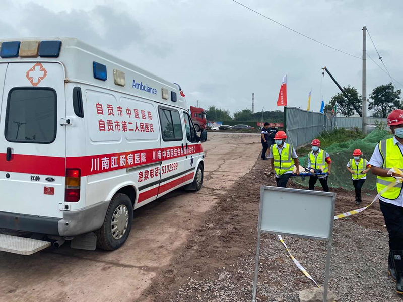 演练模拟因近期持续暴雨,省道305线自贡段南北停车场左幅箱涵河道水位急速上涨,箱涵施工及作业人员可能受到生命威胁。险情发生后公司立即启动应急预案,展开抢险救援,用最短的时间控制了险情。我院医护人员第一时间赶到现场,做好伤员的急救处置和安全转运工作,最大限度地减少了险情造成的人员伤害。