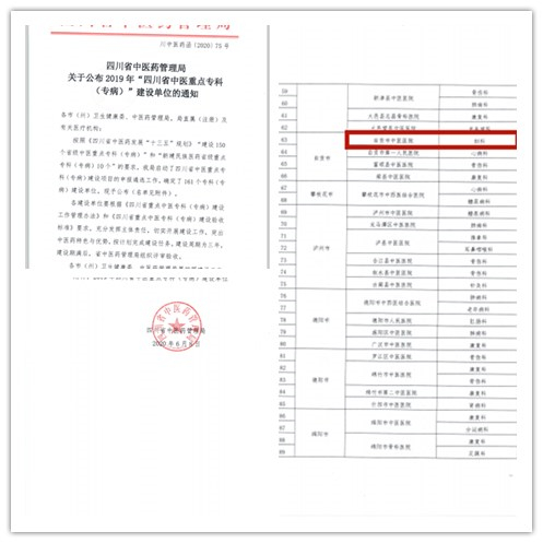 喜获四川省中医重点专科建设单位!!!