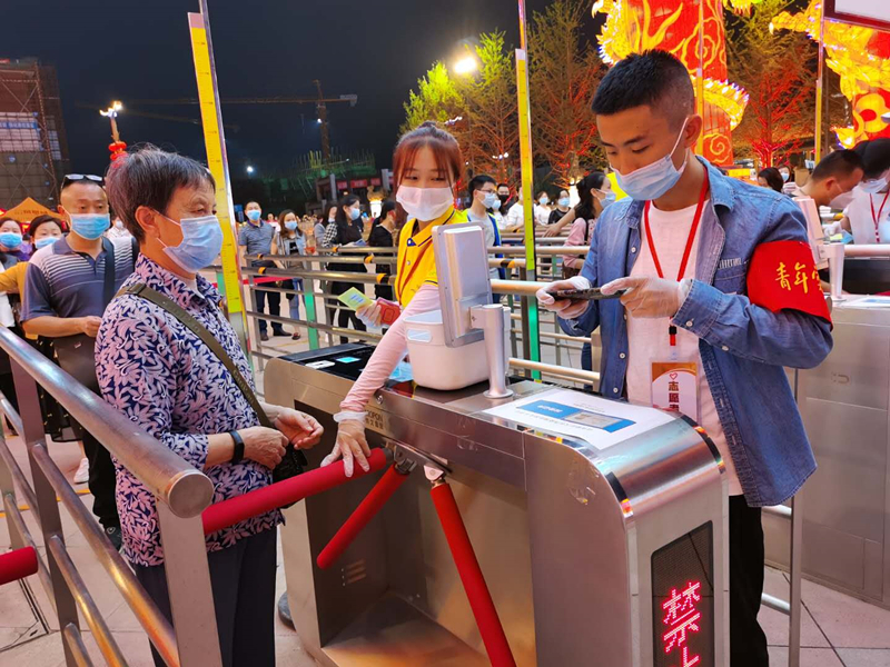 在为期2天的的志愿服务活动中,5名青年志愿者分批次轮岗,协助进行检票,帮助带有小孩的游客进园,进行游客入园轨迹查询,指导游客微信扫描二维码进行轨迹查询,通力配合把好入园的第一道关口。
