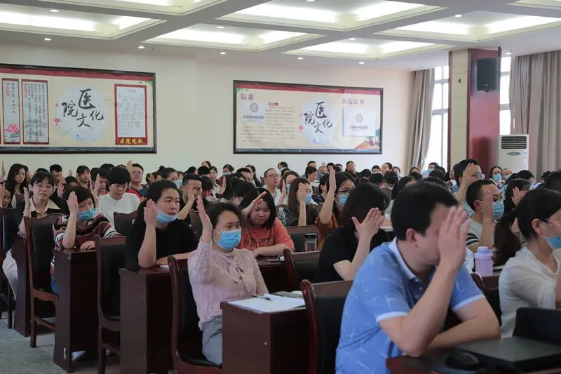最后,代表们举手表决通过了《院长工作报告》《2019年度财务决算和2020年度财务预算草案》《医院定岗定编定员实施方案(审议稿)》《医院绩效工资分配方案(审议稿)》。