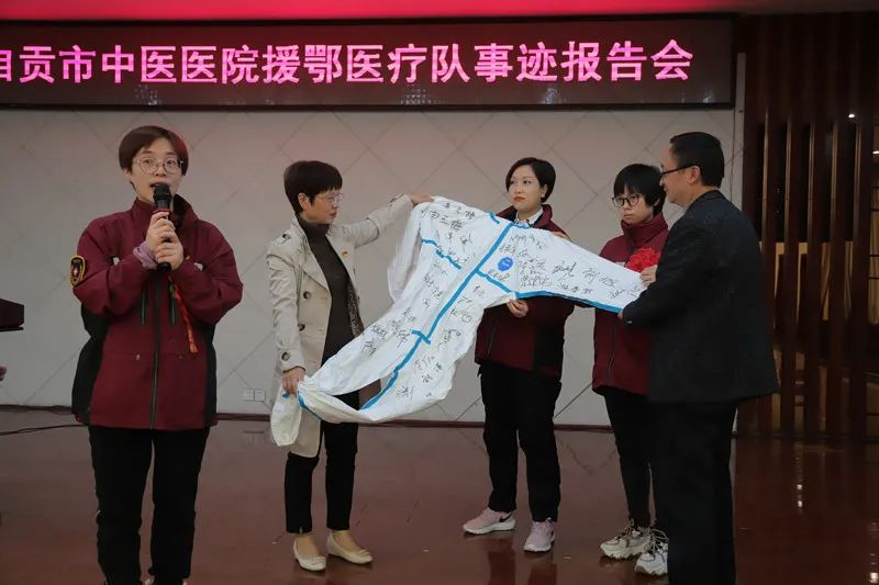 同时,援鄂队员将签名横幅、画册、防护服赠送给医院留作纪念。