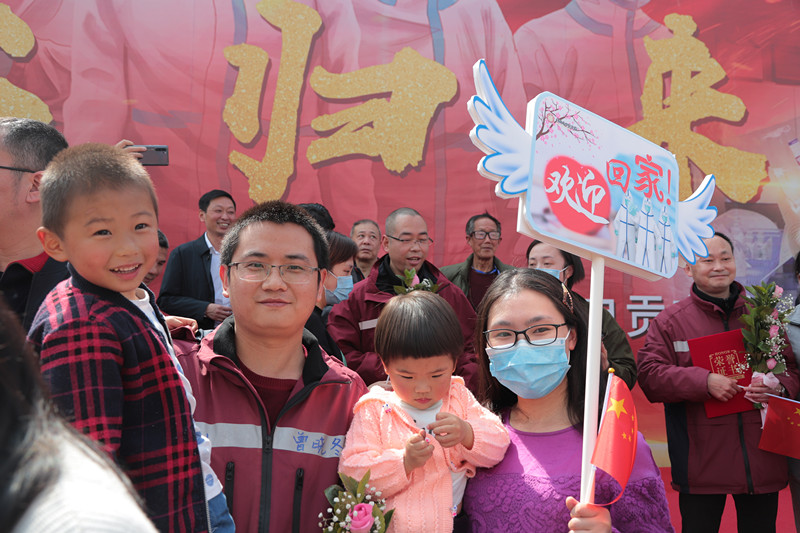经历了从医中最严峻的考验,踏上家乡的土地,见到久违的同事、朋友和亲人,2名队员倍感亲切,感慨万千,纷纷和他们拥抱、合影留念。面对媒体记者的采访,曾晓冬说:“现在最想陪陪家人,孩子。接下来休整几天,好好投入接下来的工作。”