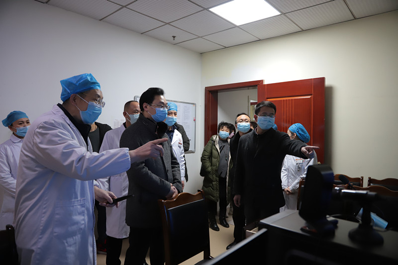 2月17日,副市长陈张铭,市卫健委主任、市中管局局长黄麟一行调研指导市中医院新冠肺炎疫情防控工作,医院党政班子成员及相关部分负责人陪同。