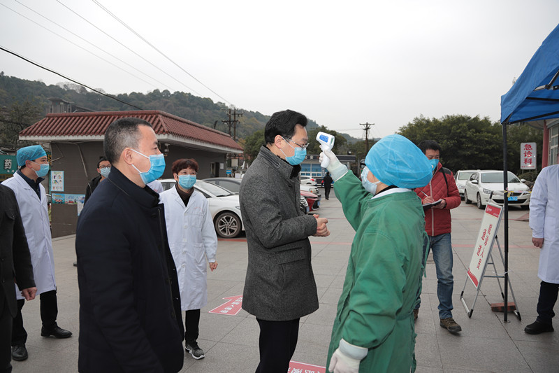 “你好,请接受体温检测。最近有没有咳嗽、发热等情况?……”在预检分诊门口,陈张铭副市长一行主动接受预检分诊医护人员对他们的询问和体温检测。