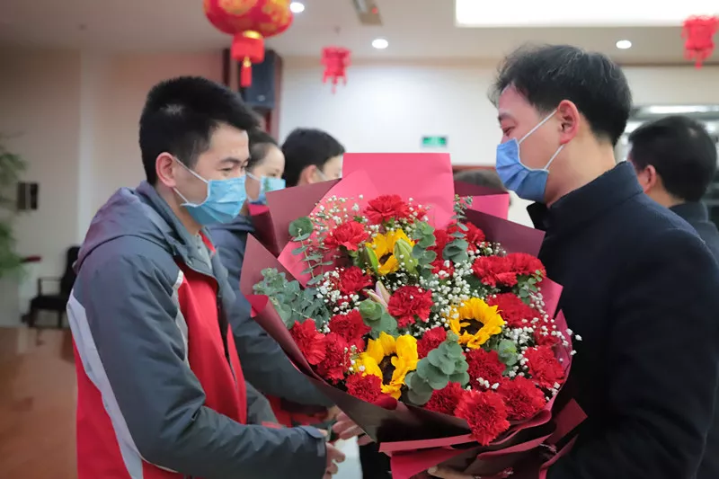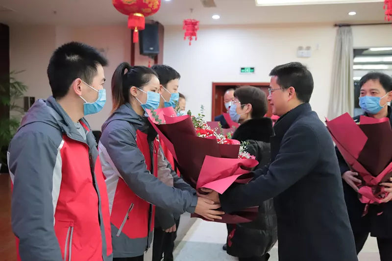 28日早上7:20,医院党政领导班子成员及相关职能部门负责人,为这4位“最美逆行者”送行。