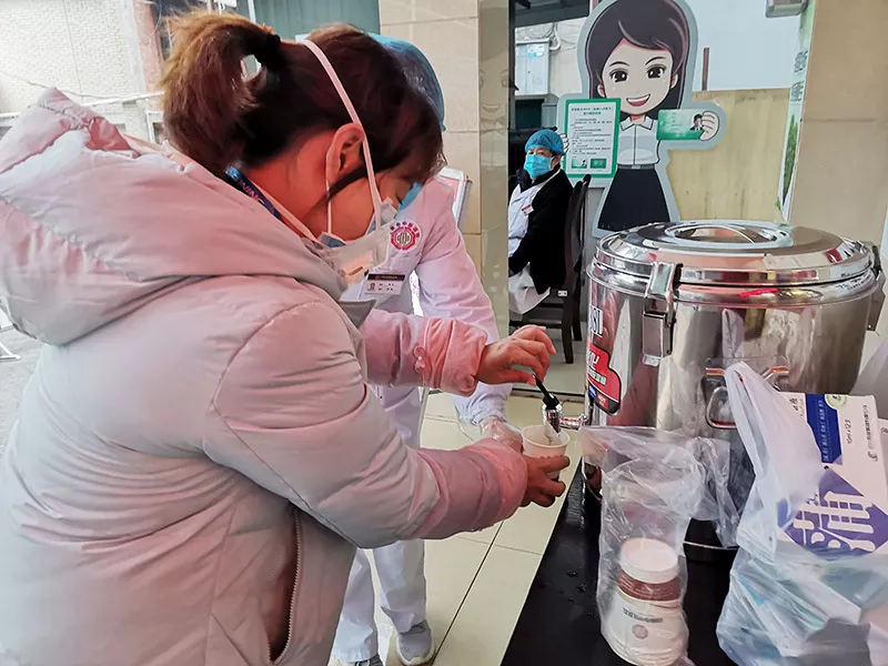 “你们的服务真的太好了!艾灸熏大厅消毒,还在门口为我们准备了防流感中药。”在檀木林分院门口摆放着一桶防流感中药,免费供市民饮用。上午11时左右,某养老机构的工作人员专程赶来,一次性购买了150副省中医药管理局推广的防流感中药处方“拿回去熬好,工作人员和老人们都可以喝,非常方便。”