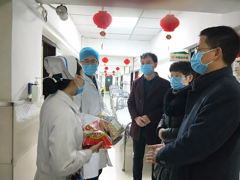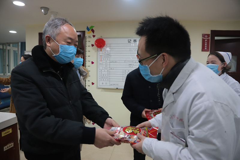 1月24日,农历大年三十,院党政领导班子和部分职能科室负责人分别来到马冲口本部、檀木林和汇东分院各临床科室,对坚守一线的医务人员进行慰问,向他们及家人致以新春的问候和祝福。